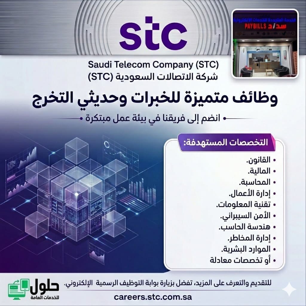 STC تُعطي الأولوية للكوادر السعودية ضمن متطلبات نسب السعودة، راجع الشروط التفصيلية على بوابة التوظيف الرسمية.