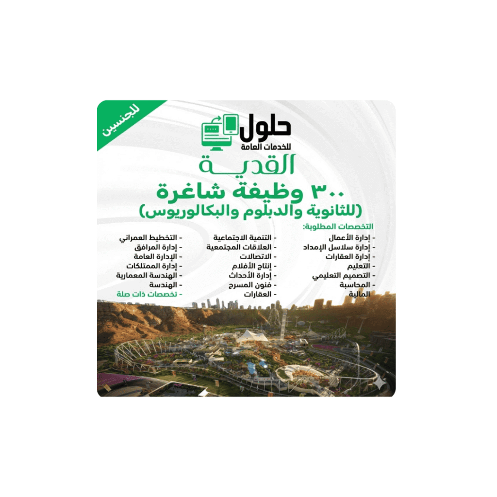 🎢 أضخم إعلان توظيف لهذا العام: أعلنت شركة القدية للاستثمار (Qiddiya)، المطور لأكبر مشروع ترفيهي وثقافي في المنطقة (مشروع حكومي ضخم)، عن فتح باب التقديم لشغل أكثر من 300 وظيفة شاغرة. الفرص متاحة للجنسين من حملة الثانوية العامة، الدبلوم، والبكالوريوس، للعمل في بيئة عالمية ترسم مستقبل السياحة في المملكة. 🌟 لماذا العمل في القدية؟ ✅ […]
