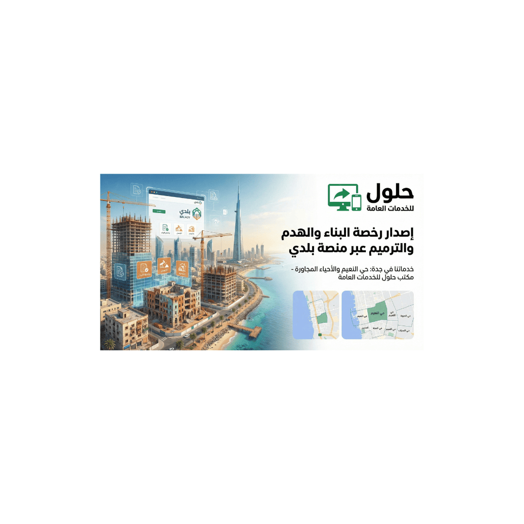 📌 إصدار رخصة البناء والهدم والترميم عبر منصة بلدي أصبح أسهل مع مكتب حلول للخدمات العامة – خدمة سريعة لأهل جدة وحي
