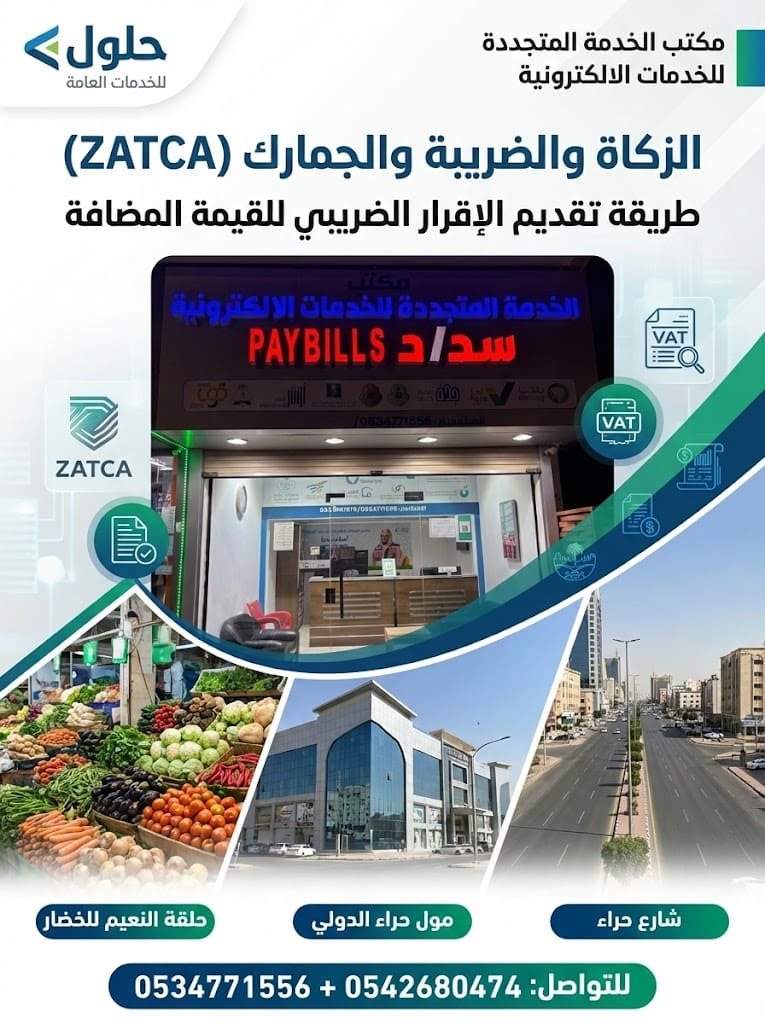 تقديم إقرار ضريبة القيمة المضافة في جدة – حي النعيم – شارع حراء ✔ مكتب الخدمة المتجددة للخدمات الإلكترونية ✔ مكتب حلول