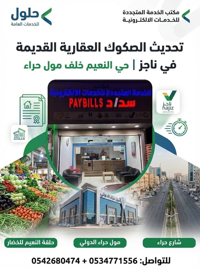 تحديث الصكوك العقارية القديمة في ناجز – حي النعيم خلف مول حراء الدولي ✔ إنجاز سريع ✔ متابعة دقيقة ✔ مكتب حلول