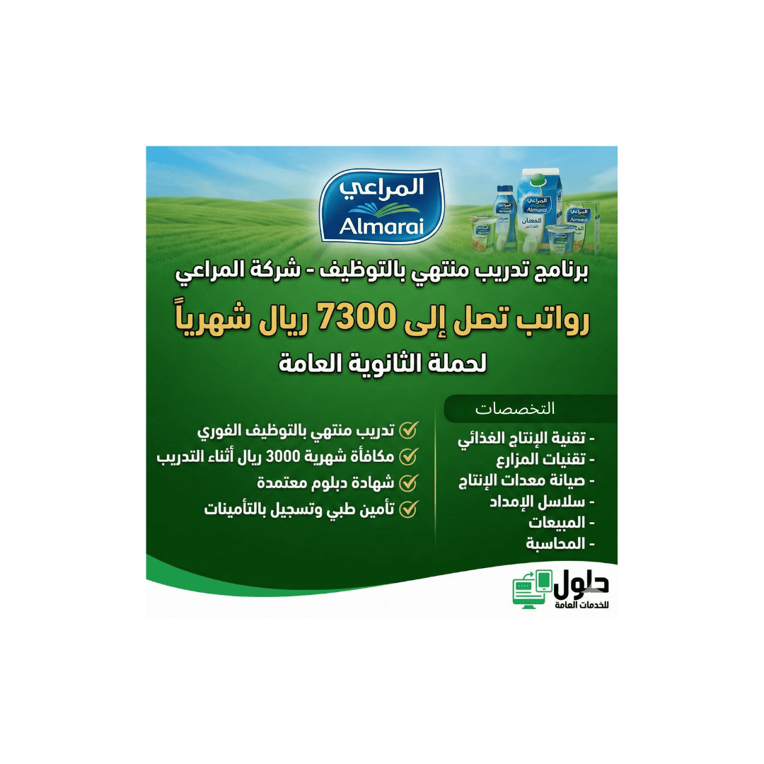 🥛 فرصة العمر للخريجين: أعلنت شركة المراعي (عملاق الصناعات الغذائية)، بالتعاون مع معهد الصناعات الغذائية، عن فتح باب القبول في برامج الدبلوم